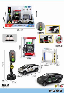 惯性特斯拉皮卡车套装(红路灯3粒纽扣电池LR44)(加油站带声音3粒LR41)包电