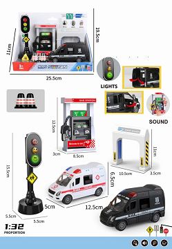 惯性救护车 警车(红路灯3粒纽扣电池LR44)(加油站带声音3粒LR41)包电