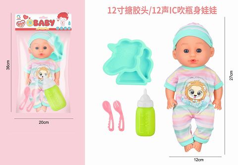 12寸搪胶头吹瓶身娃娃带...