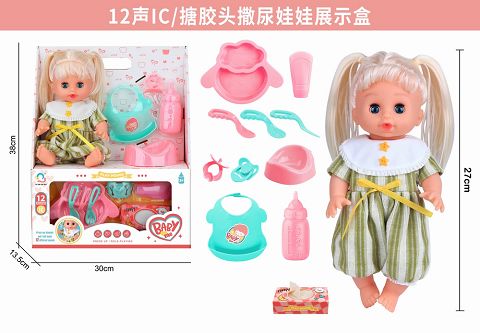 12寸搪胶头撒尿娃娃带管...