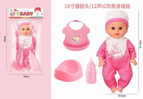 16寸搪胶头吹瓶身娃娃带...