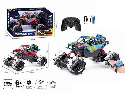 1:18小四轮遥控 七彩霓虹、UV喷镀 合金侧行车 黑、红2色 遥控器 手表感应器 双配置