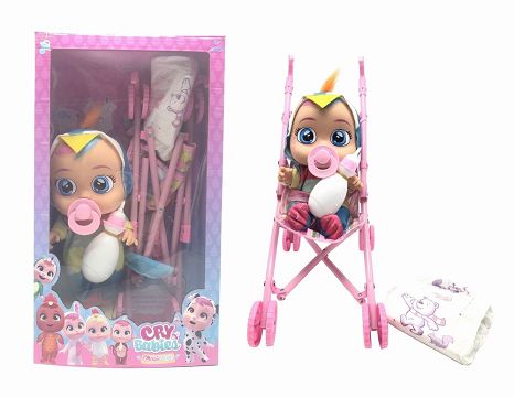 第3代14寸搪胶哭泣娃娃会喝水真流眼泪带四声音乐DAD .Mother.Angry.Cry鹦鹉款带大号手推车带单奶瓶奶嘴水盆尿不湿