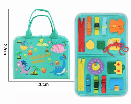 蒙氏儿童早教益智学习书--毛毡蓝绿色恐龙单页