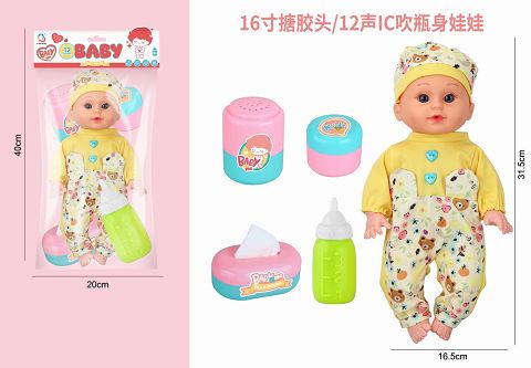 16寸搪胶头吹瓶身娃娃带...
