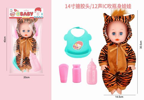 13寸棉身定眼娃娃,带奶嘴、奶瓶,带新4声IC,包3*AG13电池