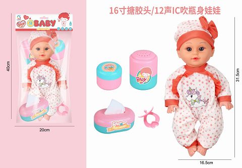 16寸搪胶头吹瓶身娃娃带...