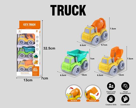 3只装开窗盒惯性卡通车