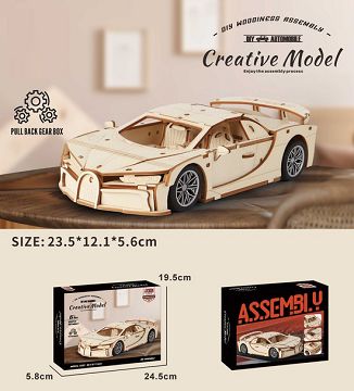 DIY木质拼装布加迪跑车...