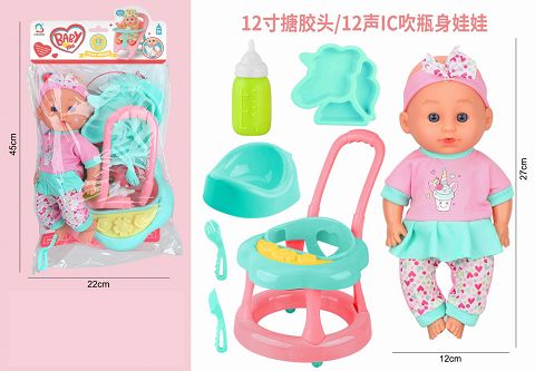 12寸搪胶头吹瓶身娃娃带...
