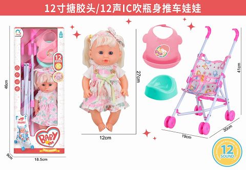 12寸搪胶头吹瓶身娃娃带...
