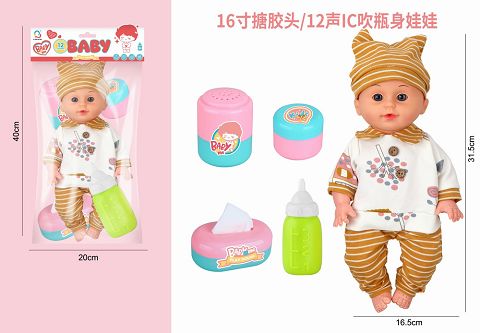 16寸搪胶头吹瓶身娃娃带...