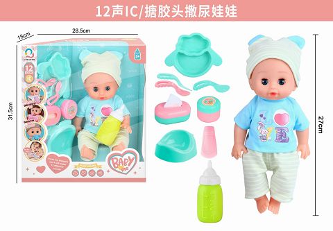 12寸搪胶头撒尿娃娃带管...