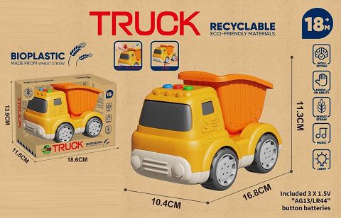 麦秆料卡通滑行工程翻斗车 (带灯光音乐)