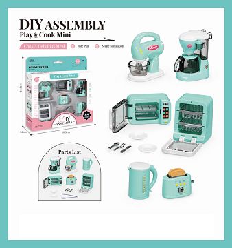 蓝色小家电六件套(烤面包机,咖啡机,消毒碗柜,水壶,烤箱,搅拌和面机)