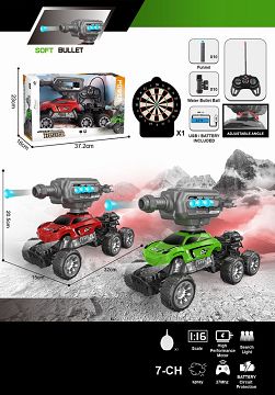 1:16 27MHz遥控7通6轮攀爬车带遥控发射软弹炮台,带喷雾功能,一键演示,带10粒软弹10粒子弹夹,带探照灯,带喷雾器注水瓶 (包电)