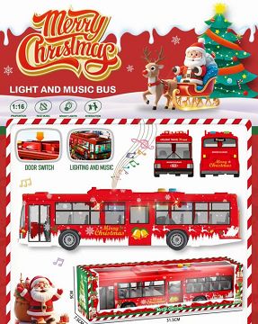 圣诞老人灯光音乐惯性早教玩具公交车大巴车(红色)