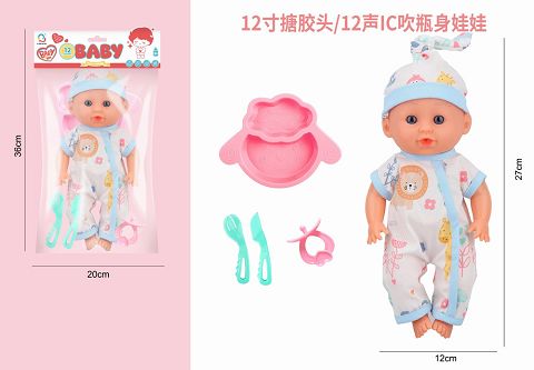 12寸搪胶头吹瓶身娃娃带12声IC
