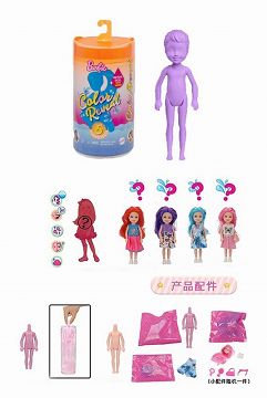 11.5寸实身惊喜变色芭比。带5样不同的惊喜配件,娃娃360度旋转,