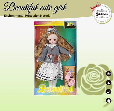 【英文】12寸 30厘米 13关节 实身3D漫画眼时尚卡通戴绿帽子萝莉娃娃