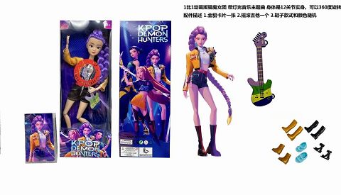 K-POP 猎魔女团动画版11.5寸12关节实身带七彩灯光主题曲Rumi鲁米打歌芭比带金貂卡片一张带摇滚吉他