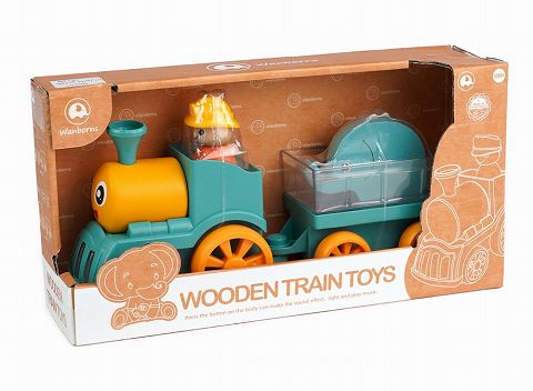 木质火车带音乐灯光包电拖单斗动物2款混装