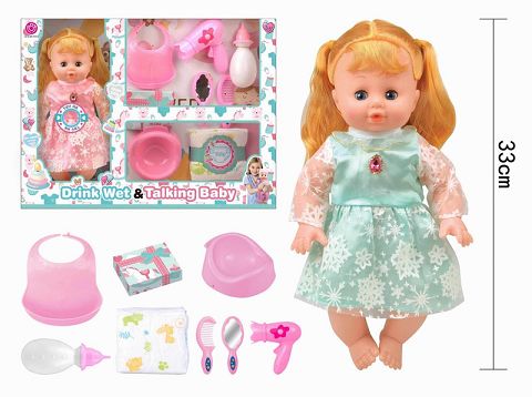 14寸吹瓶活眼娃娃,喝水小便功能带6声IC包3粒AG13