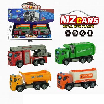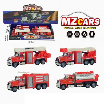 声光合金回力车 (拯救车+消防车+洒水车+云梯车)