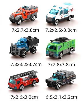 1:64滑行合金车模滑行车6只/袋 滑行工程车消防车救护车城市系列合金车仔
