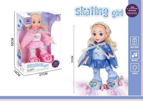 电动新款溜冰冰雪公主戴披风(带灯光和音乐)