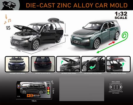 英文1:32压铸锌合金灯光音效理想L9车模
