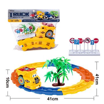 ABS卡通电动音乐工程车轨道工程套装(2AA不包)
