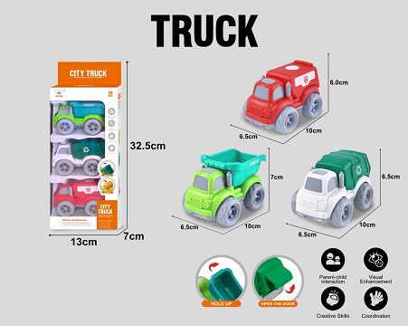 3只装开窗盒惯性卡通车