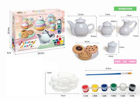 Diy自彩创意艺术彩绘涂色白胚茶壶+下午茶点心套装