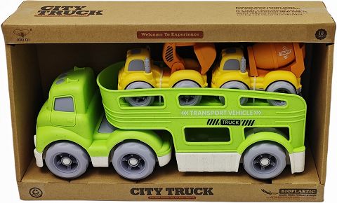 麦秆料滑行卡通拖头运输车(无灯光音乐,带2只滑行车)