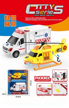 城市救护套装 拉线飞机+惯性救护车 灯光&声效
