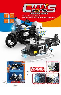 城市特警套装 拉线飞机+惯性摩托车 灯光&声效