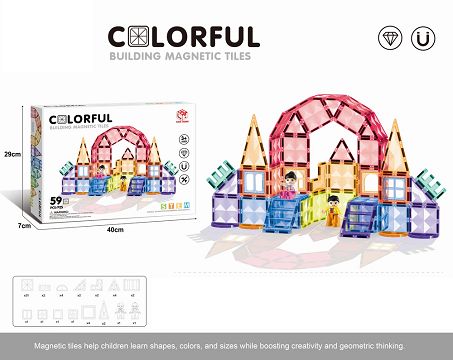 7.5cm钻面磁力片59pcs 益智DIY拼装彩窗磁力积木磁性拼图