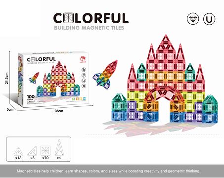 3.75cm钻面磁力片100pcs 益智DIY拼装彩窗磁力积木磁性拼图