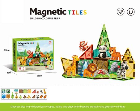 7.5cm动物园系列磁力片27pcs 益智DIY拼装彩窗磁力积木磁性拼图