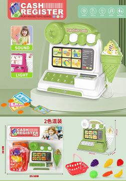 灯光音乐收银机2色混装+水果包6件+篮子