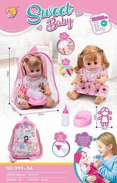 14寸搪胶娃娃女,会尿尿, 带12声IC配奶瓶+尿盆
