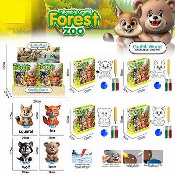 充气涂鸦森林动物站底配气筒12盒