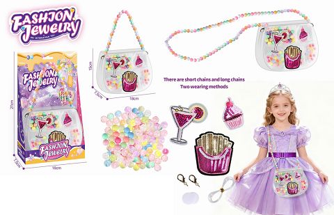 过家家DIY女孩串珠 饰品包 斜挎包 2合1手工制作 麦当劳亮片绣花刺绣贴片