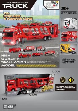 高品质仿真模型双层消防运输卡车 (带声光音乐包电AG13 3粒) 随机配3只车