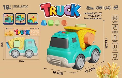 麦秆料卡通滑行积木配对翻斗车 (带灯光音乐)