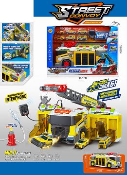 声光音乐多功能消防车收纳轨道配6个合金车(3颗AA,不包)