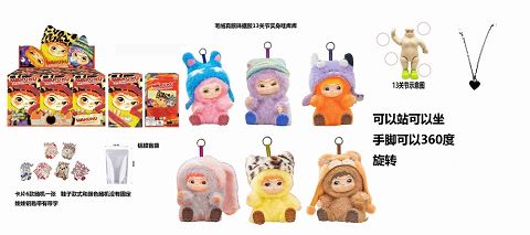 1.0毛毛潮趣派对系列9寸13关节实身真眼珠WAKUKU带钥匙扣带6款卡片随机一张 6款6PC