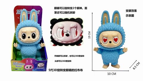 第5代全球系列版系列 19CM眼睛旋转变眼搪胶炫彩拉布布摆件,功能描述手脚,脸蛋都可以都可以随意拆卸
