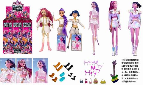K-POP 彩虹猎魔系列12寸12关节实身真玻璃眼珠惊喜猎魔女团娃娃3人混装,金貂卡片一张